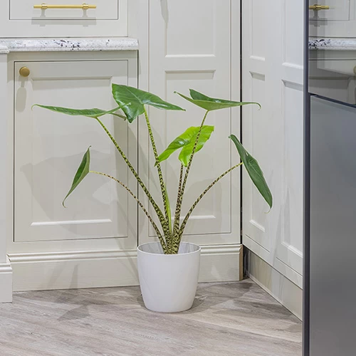 - Alocasia prefers above average humidity, so stand on a pebble tray to improve humidity and mist frequently.