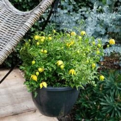 A variety of clematis tangutica, ‘Little Lemons’ is a compact plant with a neat, bushy habit and nodding, bright-lemon flowers.