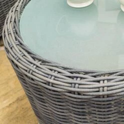The Bunbury Set is an impressive, contemporary rattan sofa set which can look just as good indoors as outdoors. It comes complete with two single chairs, one sofa, and one frosted glass top coffee table; all with a weatherproof rattan effect weave.