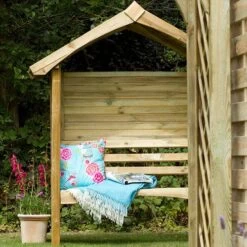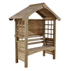 The arbour has a solid timber roof and back panel to keep you protected from any unexpected rain showers. The timber used has been Pressure Treated by the manufacturer to give it a 15 year guarantee against rot and fungal decay.