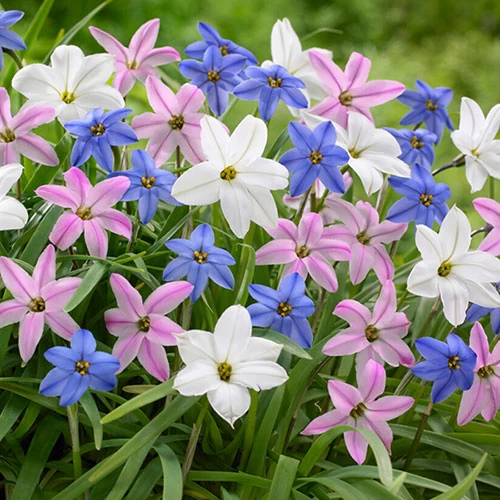- 80Â x Ipheion ? Beautiful little star-shaped, silvery blue scented flowers from March to May, reaching 25cm