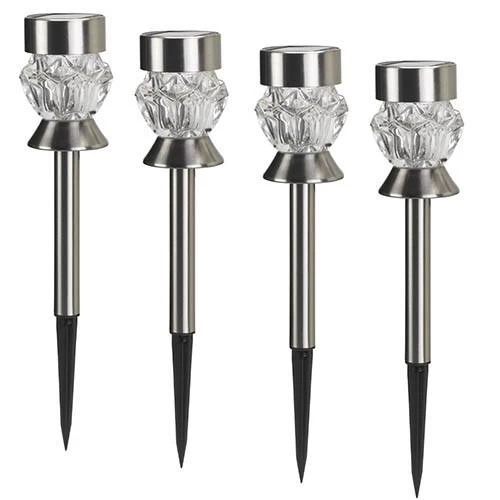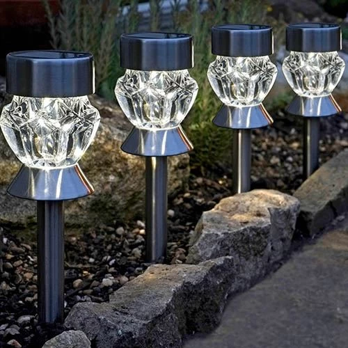 These solar powered crystal lights are an ideal way of bringing light and interest to pathways, borders and garden features. They have a stylish stainless steel finish with thick patterned glass that makes for a stunning visual effect when lit. Cleverly, the lights can also be switched between white and colour changing for added effect.