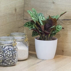 Also known as Fishbone Prayer Plant, Ctenanthe has wonderful oval leaves that can become up to 30cm long and are wonderfully patterned two-tone grey-green on the top, with an underside of rich deep maroon. Perfect for a focal point in a bright spot in your home.