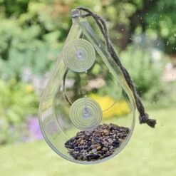 Here is your chance to see birds feeding close up. The Dewdrop Wild Bird Window Feeder is designed to stick to your window pane using the attached rubber suckers. The window feeder is made of clear perspex so you can get an unobstructed view of the birds dipping in and out of the feeder for food. A hanging rope is included if you would prefer not to stick onto your window.