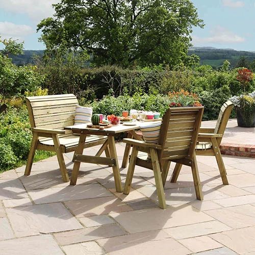 Part of the new Freya range of garden furniture, the Freya 4 Seater Dining Set is designed with fewer components for simple assembly using bolts.