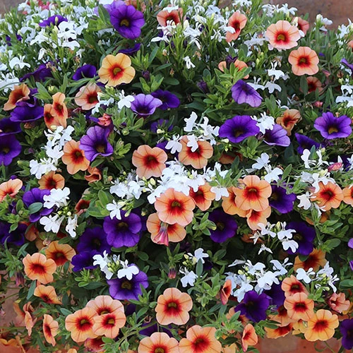 ?Fruit Salad? is a warm, bright and zingy blend of million bells, trailing lobelia and trailing verbena, chosen to co-ordinate and grow together perfectly. This green pre-planted basket will give you gorgeous colour all summer long.