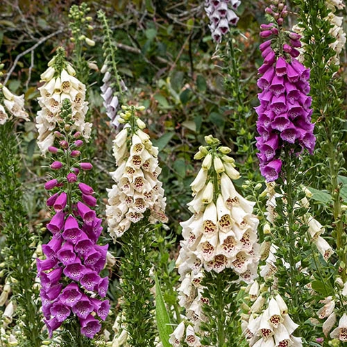The Foxglove Dalmatian mix boasts tall spire stems and beautiful bell-shaped petals in a range of rose, deep purple and cream tones. Blooming from May to July, this mix is very attractive to wildlife and will boost the number of bees and butterflies visiting your garden.
