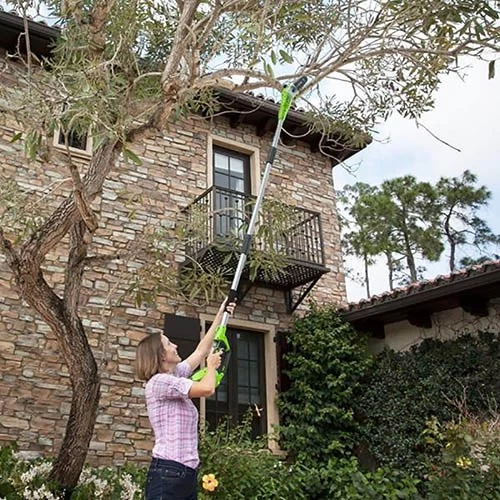 Greenworks lightweight, cordless Pole Saw allows you to work at various heights with increased steadiness and performance. No more ladders or sore shoulders! Includes long life Lithium-ion battery and charger