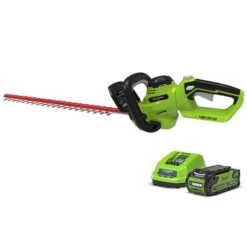 Reclaim control of your hedges with The Greenworks quiet, dual action blade hedge trimmer. This battery powered product gets the job done efiiciently and easily/ Lightweight and comfortable when cutting both verticall and horizontally.