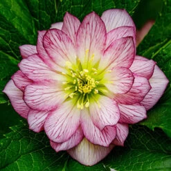 - Hellebore Double Ellen Picotee – Large, creamy white double flowers edged and spotted with deep plum.
