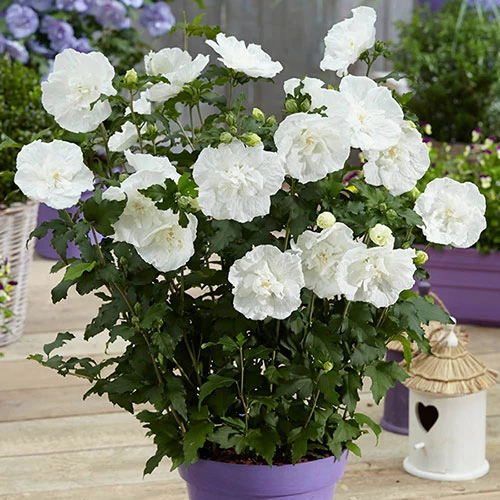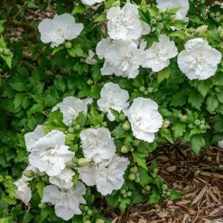This brand new ?Chiffon? Patio Hibiscus will produce an abundance of massive, multi-layered blooms ? each reaching up to 5 inches across and in an exquisite, deeply-veined white!