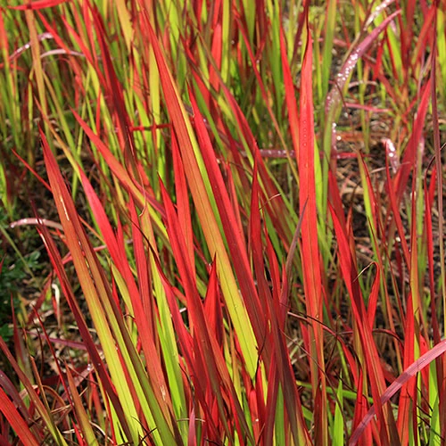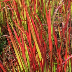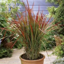 Blood Grass will slowly form large clumps and looks amazing when planted en masse, with its dazzling red blades providing contrasts of colour and texture with the surrounding garden plants. Between June and August, clusters of fluffy, silvery flowers appear, adding yet more visual interest. Try it dotted around a gravel or rock garden or in a pot so that you can get up close and admire it.