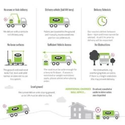 - Deliveries will be moved onto the nearest hard standing by use of pallet truck – there must be a drop kerb and flat level surface.