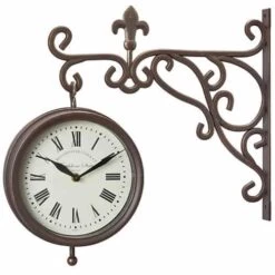 It has the benefit of being wall mounted to give you a vintage feel, is double sided, has roman numerals and quartz accuracy.