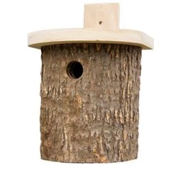 The natural air dried wooden logs has low thermal conductivity providing excellent insulation for nesting birds. The wood is beautifully pale in colour and the bark is a mottled brown colour. It is remarkably light and strong and resistant to cracking and splitting.