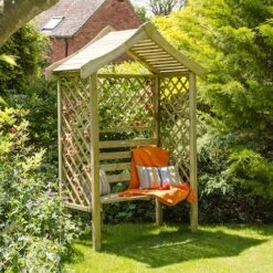 - Lattice side and back panels are great for training climbing plants and creating a little more privacy around the arbour