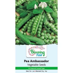 - Pea ‘Ambassador’ – Producing masses of pods per plant, ‘Ambassador’ peas are simply delicious. They are tasty and superbly juicy, these plump marrowfat peas are packed full of nutrients and are even suitable for freezing. They have an exceptional resistance to mildew, making them ideal for later sowings and successional cropping. Supplied as 1 packet of seeds (approx. 325).