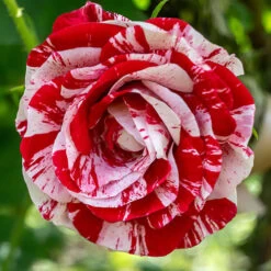 A great partner for our other striped rose, ‘Oranges and Lemons’, ‘Raspberry Ripple’ has red blooms that are inconsistently splashed with bold white stripes, superb as a cut flower and striking in mixed flower borders.