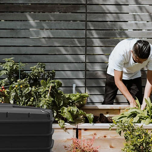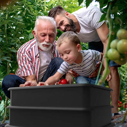 An environmentally friendly way to turn food waste into great vermicompost! The 3 Tray Standard Tiger Wormery Black operates very simply and harnesses the surface-feeding nature of the Tiger Worms that live inside it. As the worm composting unit fills, the worms follow the food upwards through the holes in the base of the trays leaving behind their rich organic compost in the trays below.